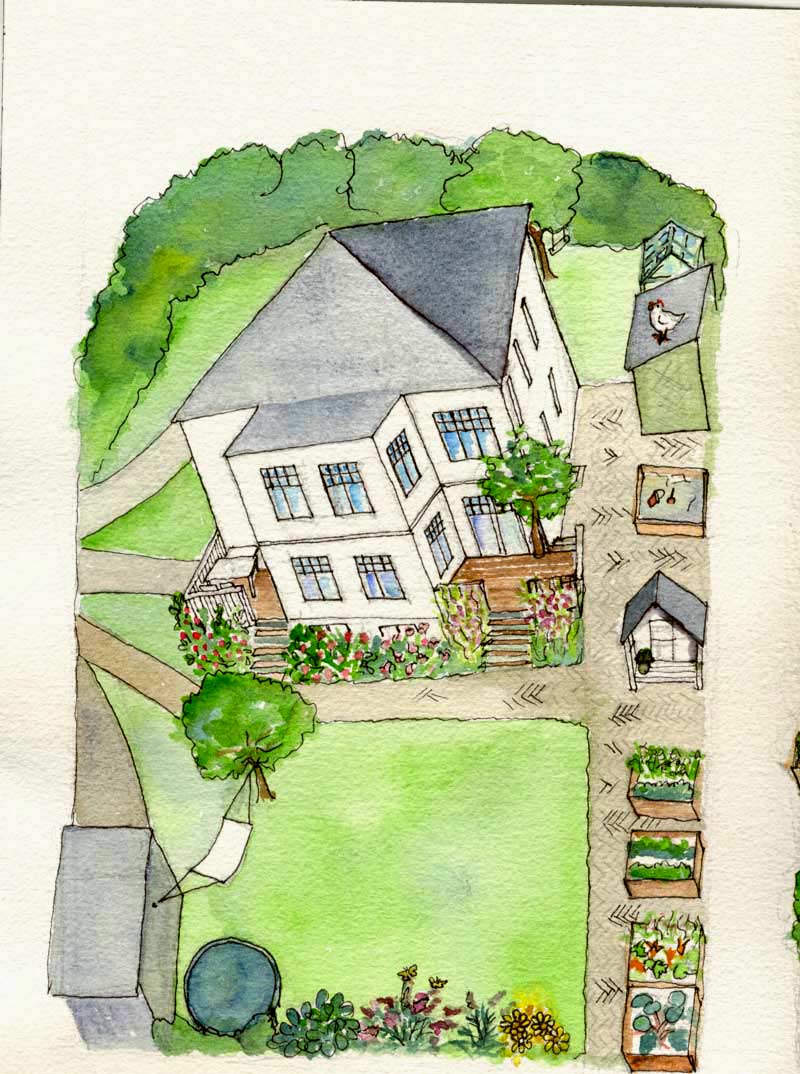 Illustrationer til Signe Wennebergs havebog "Heldige kartofler"