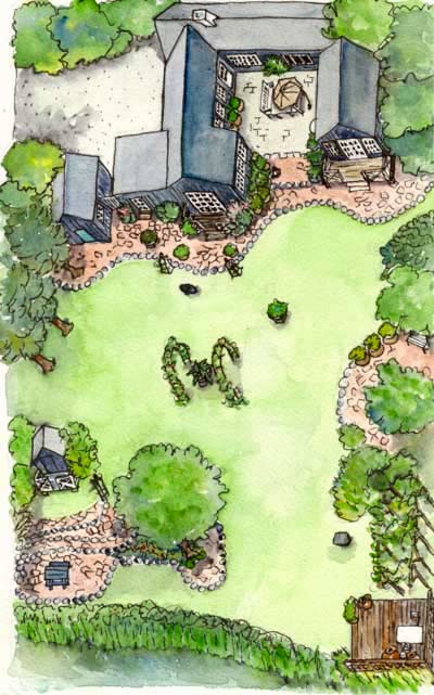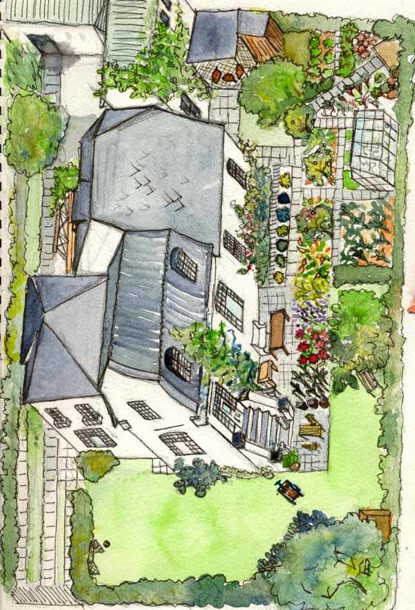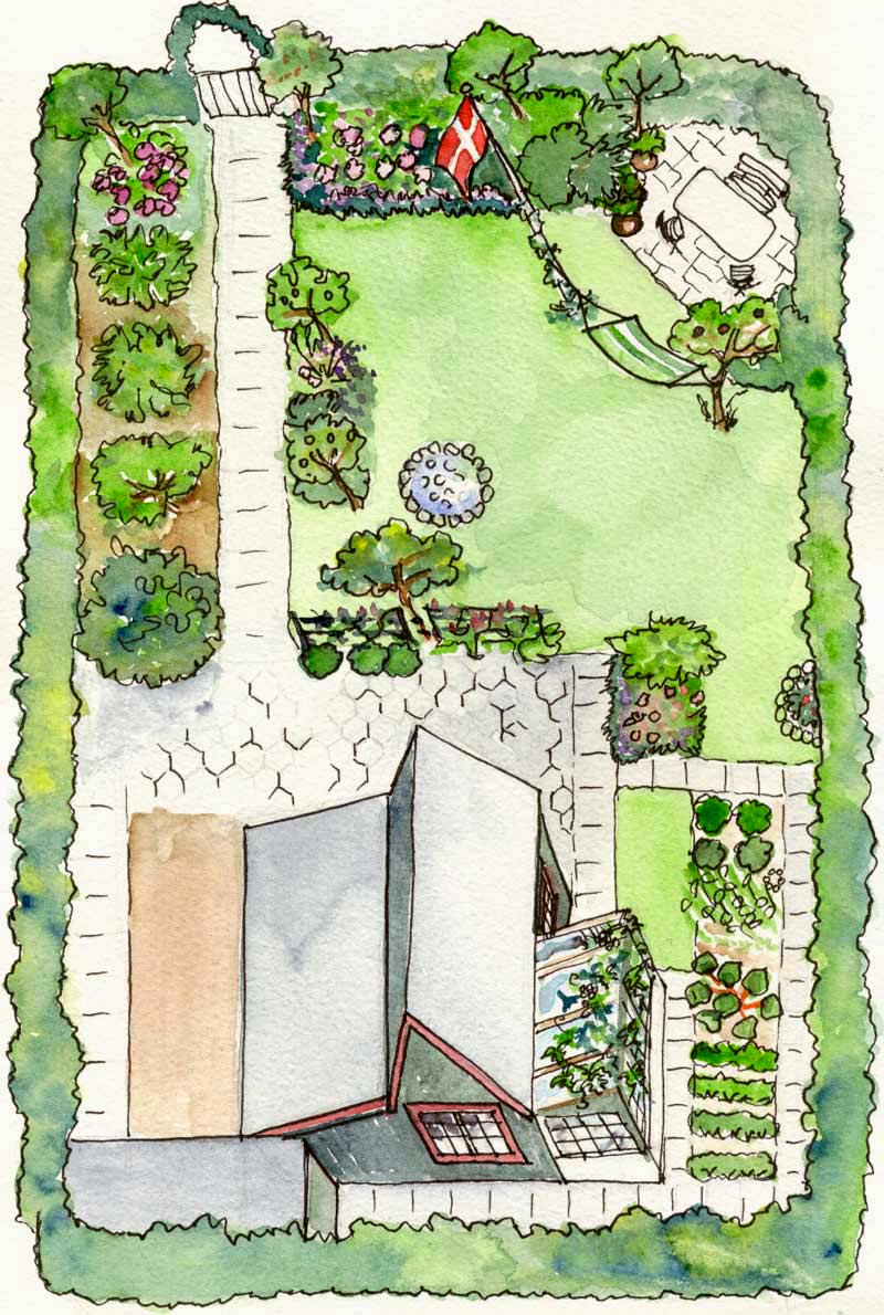 Illustrationer til Signe Wennebergs havebog "Heldige kartofler"
